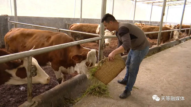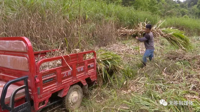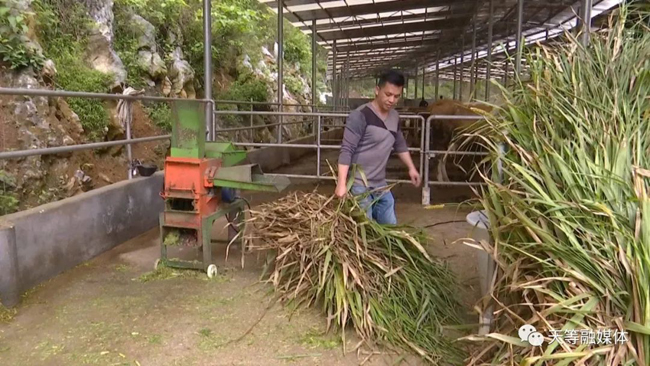天等县把荷乡把荷村亿农生态养殖家庭农场场主 黄植官:我们农场目前存栏有65头牛,牛的主要品种是西门塔尔,其中有34头是村集体经济,牧草种植有30亩,农场预计每年能够让村集体经济带来8万块钱的收入。