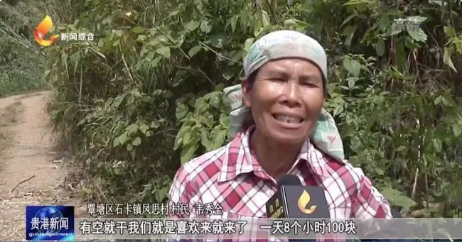 覃塘区石卡镇凤思村 村民 韦秀全:我们有空就干,就是喜欢来就来了,一天8个小时100块。