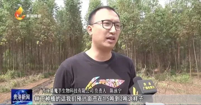 广西泳盛魔芋生物科技有限公司负责人 陈泳宁:林下种植的话我们预计亩产在1.5吨到2吨这样子,按照现在的收购价3块/公斤,我们的亩产产值在4000元左右。目前公司建立了示范基地,通过“公司+合作社+农户”的模式,发展整个魔芋林下产业,通过示范基地让周边的农户参与进来种植,进行统一包回收。