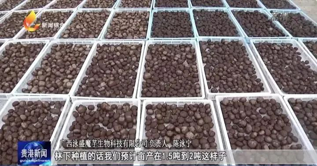 据统计,目前覃塘区年加工鲜魔芋1.2万吨,产出魔芋精粉1000吨,产值6000万元左右。魔芋种植市场前景广阔,经济效益高,林下种植是生态产业的新模式,有助于提高林业的综合效益。
