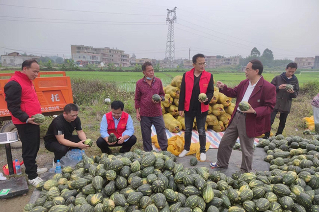 当天,广东省江门市的客商来到合作社基地,在田头收购精品南瓜、毛节瓜。面对丰收、产销两旺的景象,合作社负责人戴育生说,按照珊罗镇党委政府及乡村振兴工作队引导的发展方向,合作社将产业持续做强做大,帮助更多的农民致富。