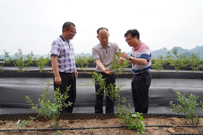 舒善隆局长查看蓝莓的生长情况