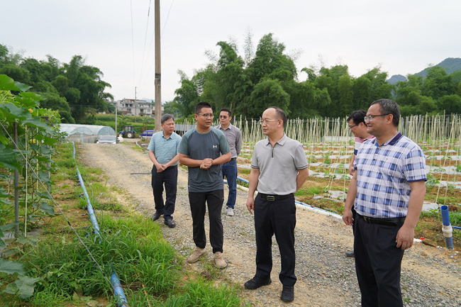舒善隆局长查看蔬菜的生长情况