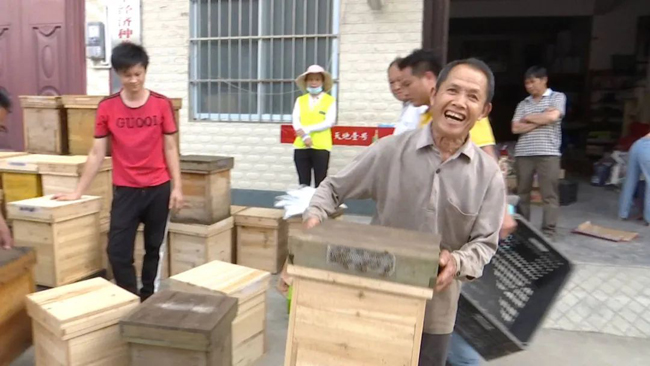 天等县福新镇理进村中蜂养殖户 吕健民:我们通过跟黄书记引进的养蜂技术, 我本人也拿了一些蜂种,(我)很有信心养好这个蜜蜂,希望通过养殖蜜蜂能够给我们农户带来多一些的收入。