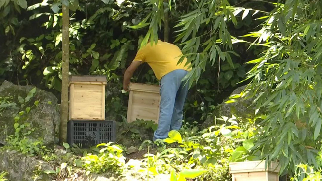 中蜂养殖户吕健民通过前期培训掌握了中蜂养殖的技术,他决定利用后山气候温和环境进行养殖,对于这个项目他充满信心。