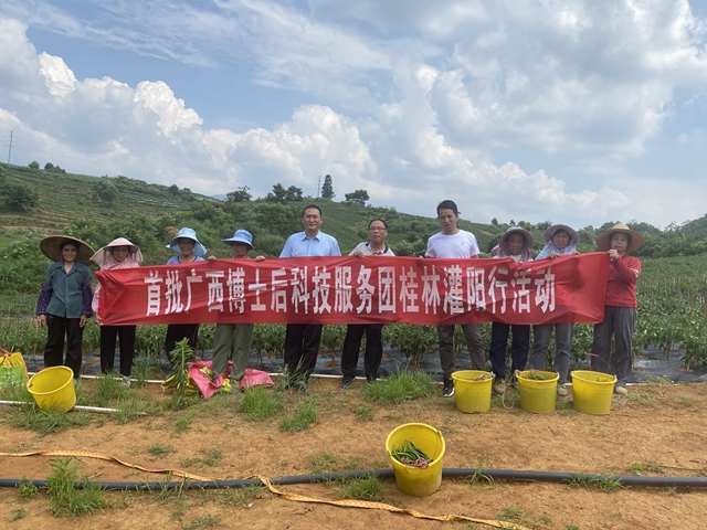 近日,首批广西博士后科技服务团到灌阳县开展蔬菜生产技术服务指导工作,桂林市农业科技中心副主任李玉洪、所长潘玲华,灌阳县农业农村局科技特派员、推广研究员蒋生发参加指导活动。