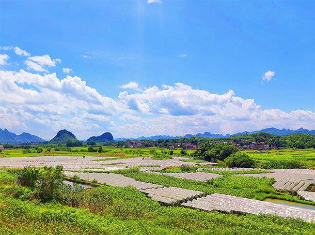 近日,在河池市宜州区洛西镇六寨村的葡萄园可以看到,一串串紫红饱满的葡萄挂满枝头,香味四溢,令人垂涎欲滴。村民在园中忙着采摘和装运,正是一片惹人喜爱的丰收好景象。