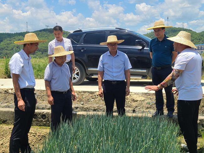 调研组在田东县委组织部部长和农业农村局领导等相关负责人的陪同下,来到田东县村企合作集体经济香葱产业园基地进行实地调研和座谈。他们对田东香葱种植品种、生产、市场、价格、销售、技术及“公司+合作社+基地+农户”模式建立标准化蔬菜规模生产基地需求等情况进行详细了解,询问了品种培优、品质提升、品牌打造和标准化管理方面需要解决的问题,并就育种育苗、土壤改良、病虫防治、管理模式、机械化等方面提出意见和建议。