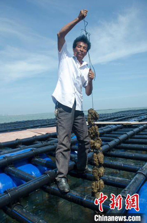 郑宏明展示他的大蚝。