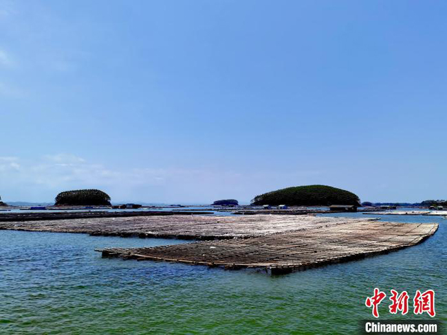 钦州港龙门七十二泾海域的蚝排。