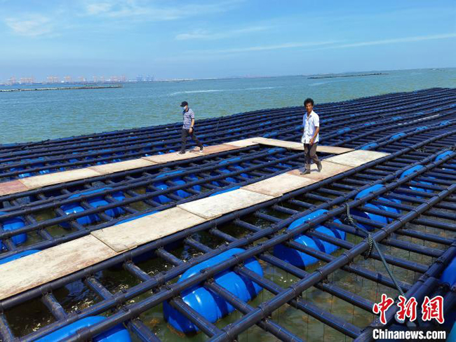 郑宏明介绍,现在养殖者普遍使用以竹木为材料的蚝排,需要大量木材供应,且抗风浪能力低,易损坏,一般使用年限仅有3到5年。他的新型蚝排虽然造价高,但是可以有效抵御海上风浪,降低台风威胁,助力生蚝养殖走向深海,使用期限长达10余年甚至20年。从长远看,成本反而更低,且相对环保。