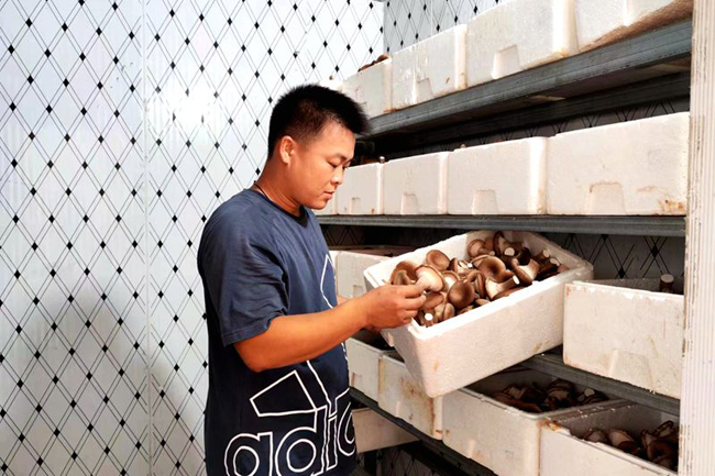 在充分研究了解当地土地资源和劳动力情况后,2020年6月,华超裕依托东南村委岭心村现有包含各种微量元素和矿物质的土质,利用自家宅基地投资建成6个占地2000平方米的大棚,雇佣附近6户村民,种植猪肚菇、黑皮鸡枞菌、秀珍菇等食用菌,这些食用菌市场价格较高,深受消费者喜爱,供不应求。