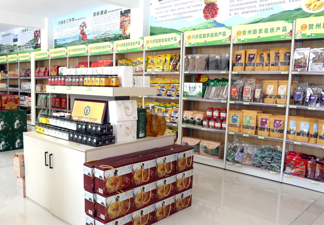 图为八步区乡村振兴产品供销馆展示展销的农产品