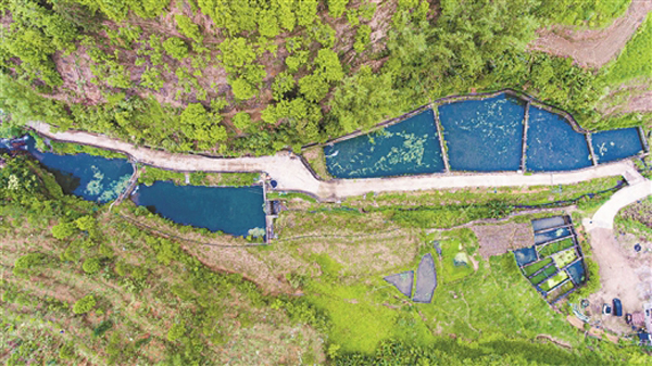 泉水养鱼。