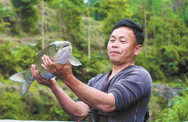 好山好水养好鱼。在石山脚下挖出池塘,引来山上清泉,以塘边山野生长的饲草投喂,石剑村民就地取材,创造出独特的养鱼方式。这样养出来的鱼,生态环保,肉质鲜美,成为当地人待客的佳肴。
