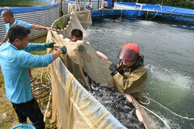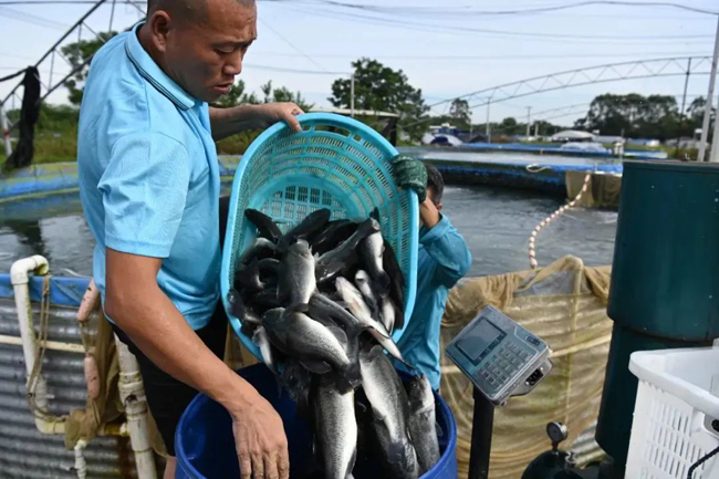 近日,合浦县石湾镇新安村柠檬山水产养殖农民专业合作社又收获了一批加州鲈鱼,收购价格达到每公斤40元。
