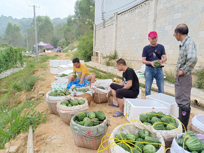9月初,在确保有产量的同时,林圩社区党总支部带领合作社主动出击,积极寻找销售渠道,在与专供广东及港澳地区果蔬的收购商洽谈购销问题上,大胆自荐,引导收购商到种植基地上查看大顶苦瓜长势后,双方随即以3元/斤的意向价格共同签订了购销协议,以保障喜获丰收后的瓜果销路及价格不用愁。