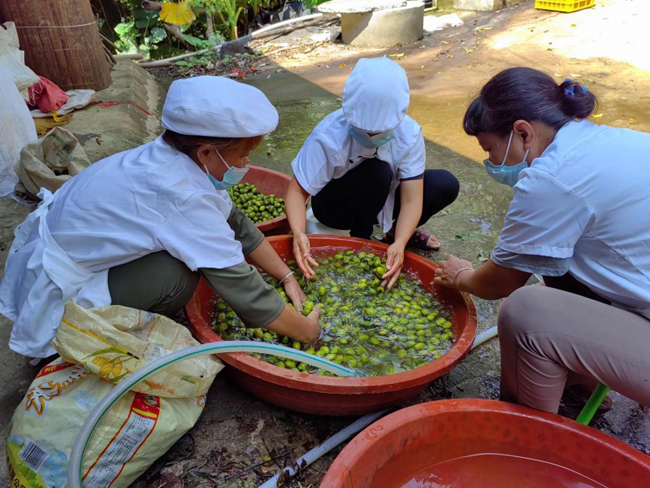 工作人员清洗收购的黄榄。