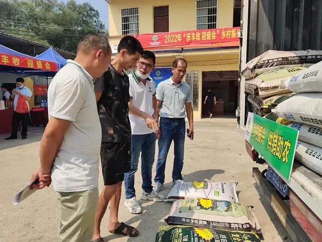 合浦县廉州镇青山村分会场村民正在选购化肥。
