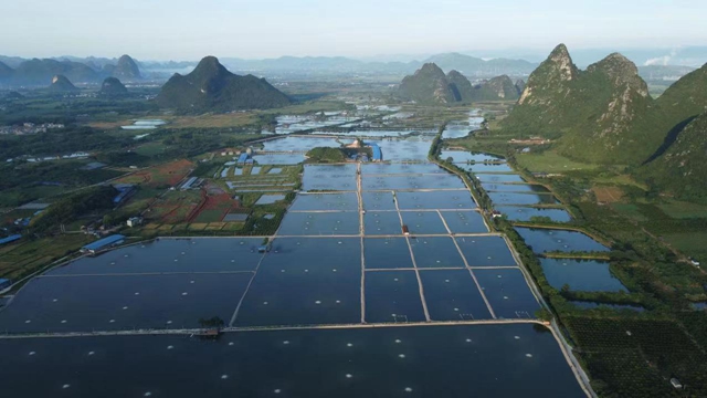 桂林市临桂区是桂林渔业养殖大县之一,辖区内会仙镇睦洞村和四塘镇大湾村有集中连片池塘8000多亩,是桂林市水产品“菜篮子”供应主产地。2021年临桂区池塘养殖面积2.33万亩,产量1.49万吨。近年来,临桂区因地制宜,通过转方式加快绿色健康渔业发展,提质效不断提升渔业科技水平,重健康推进渔业养殖品牌创建,可持续促进渔业养殖辐射带动等,四举措将水产养殖整治与渔业转型升级齐抓并举,创成国家级水产健康养殖和生态养殖示范区,推动渔业绿色发展。走出了一条生态美、产业兴、百姓富的乡村产业可持续发展之路。