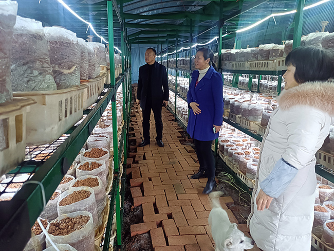 近日,走进灵川县潭下镇苏家村惠农合作社食用菌生产基地,只见身披白色大棉袄的大棚内一排排菌包整齐地摆放在菇架上,密密麻麻的伫立着一朵朵灰色的菇朵朵,长势喜人。