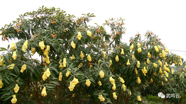 近日,记者在该合作社的枇杷种植园看到,大片的枇杷树硕果累累,随着清风吹拂,套着网袋的枇杷随风摇动。合作社负责人黄飞然告诉记者,他的合作社种有100亩枇杷,得益于前期管理技术到位,天气也不错,枇杷树第二年挂果就迎来了一个丰收年。