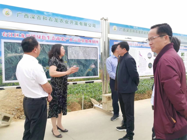 (图为:指导组在右江区龙川高效蔬菜基地调研指导)