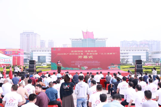 日前,由贵港市供销合作联社、贵港市农业农村局,贵港市商务局主办的2023年广西供销大集·贵港站暨“三三消费节”在贵港市新世界广场隆重举办,自治区供销合作联社党组成员、理事会副主任秦昆出席活动并致辞;贵港市人民政府副市长、市公安局局长刘晓华宣布活动正式开幕;贵港市供销社党组书记、理事会主任、市二级巡视员黄品清介绍了活动情况。