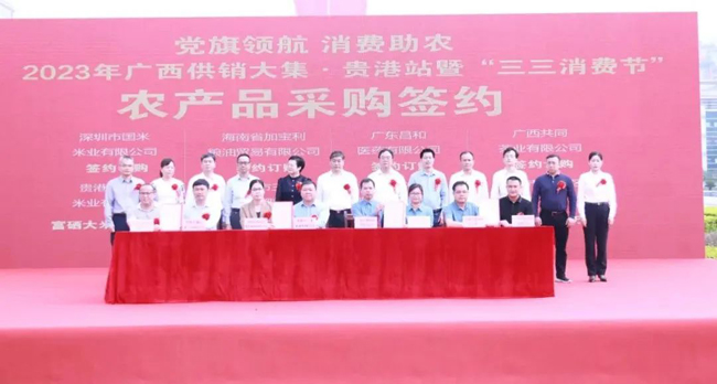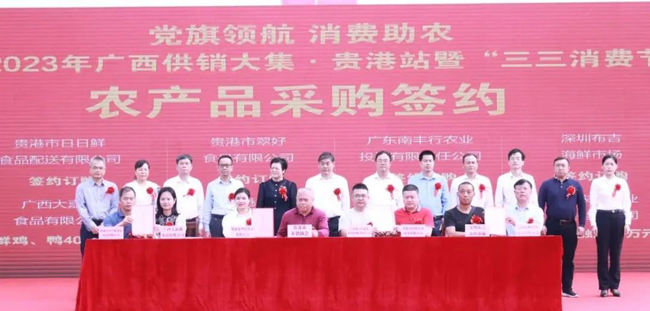 开幕式上,举行了农产品采购签约仪式,采购金额达8.852亿元,包括生鲜鸡鸭、生猪、火龙果、小龙虾、富硒大米、红茶、绿茶、艾草等贵港名特优农产品。