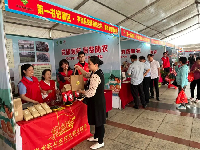 在贵港特色农产品展区中,富硒米、毛尖茶、西山茶、社坡腐竹、小龙虾等贵港特色农副产品在这里一一亮相,尽显贵港特色与魅力。众多群众在展位前纷纷驻足、挑选、尝试、购买。