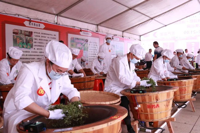 活动现场同步举办第一届“贵茶杯”名优茶品质评价暨“贵港茶”手工技能大比拼,旨在进一步提高贵港茶品质,扩大贵港茶品牌的影响力,助力贵港茶产业高质量发展。制茶师傅们统一着装,将鲜叶倒入电炒锅中,以双手为铲进行炒制,不一会儿,现场茶香四溢,吸引了不少群众驻足围观。技能大比拼过后,现场还给予获奖的企业颁奖。