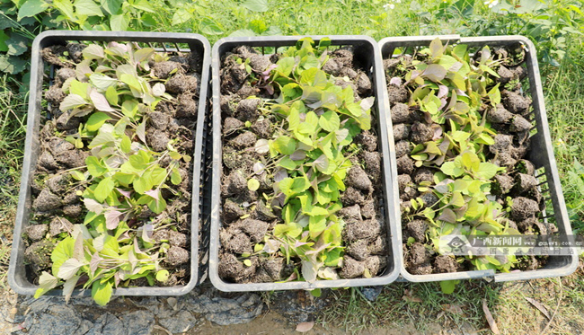 近日,笔者在贵港市港南区木梓镇藿香种植产业示范基地里看到,近30名村民分工合作,有的在植苗,有的在施农家肥,不一会儿,一排排整齐的藿香苗遍布田间地头,一派生机勃勃景象。