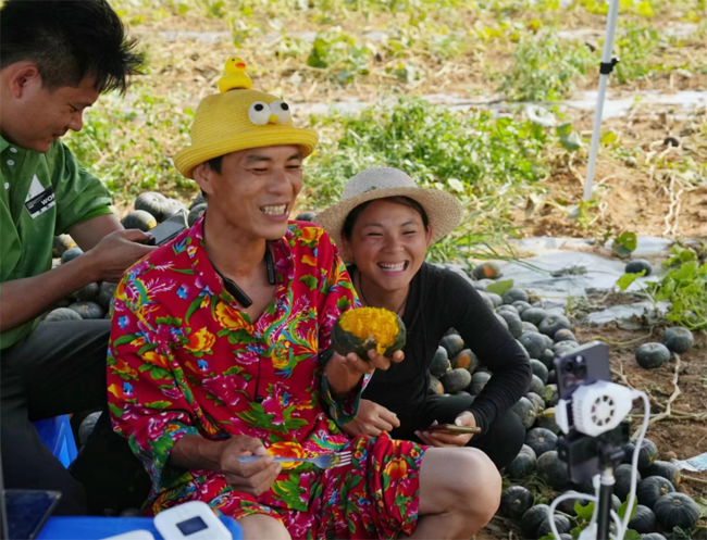 “南康水籺作为铁山港区特色招牌小吃之一,推荐大家试吃……”面对手机摄像头,12名农村电商达人上线各大直播平台,卖力地向粉丝推介着产品。开播仅仅2个小时,铁山港区“十大伴手礼”、贝贝南瓜、稳进大米等一大批农产品和土特产就售出了3.4万公斤,价值20多万元。