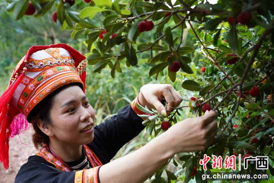 瑶乡姑娘正在摘杨梅。莫斌 摄