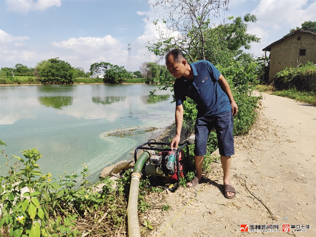 唐勇正在抽水抗旱。