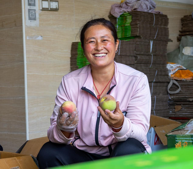 “我们家种有三十亩桃子,如果收成好的话,每年产量基本上都有十几万斤,一年能够有二十万元的收入。”寿桃种植户姚香莲说,加入合作社后,他们种植的桃子都会在网上被提前预订,不用担心销售的问题。