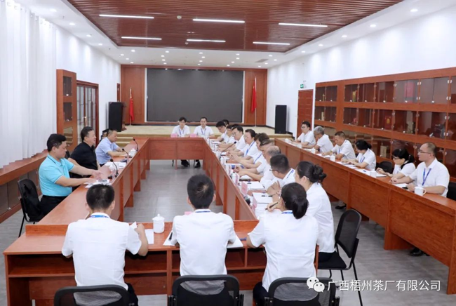 7月6日,自治区供销社党组书记、理事会主任吴浩岭率队到广西梧州茶厂有限公司(以下简称梧茶公司)调研六堡茶产业高质量发展工作,详细了解该公司上半年经营情况,并对下一步发展提出了指导意见。