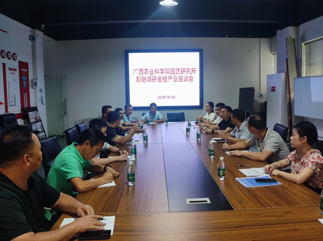 7月14日,广西农业科学院园艺所到融安县与金桔企业代表座谈交流