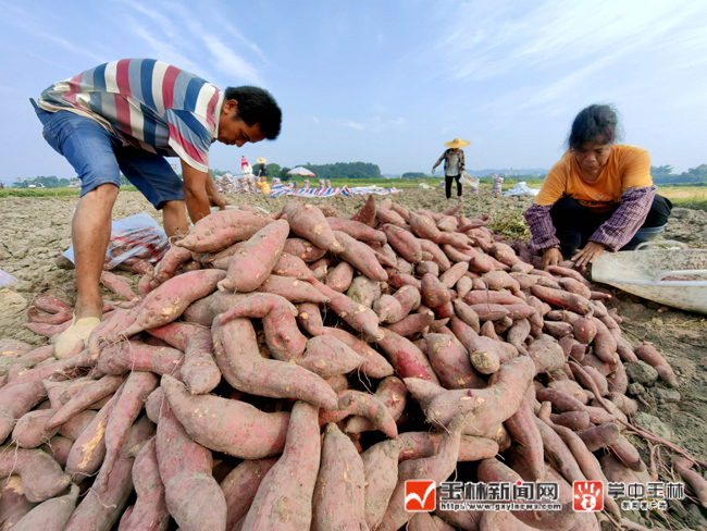 据了解,荔枝根村土地属沙质土壤,适合种植红薯,村民利用这独特的地理优势,年年种植红薯。“收完红薯接着就种晚稻了,每年种植一季红薯。今年雨水充足,红薯大丰收,种植基地有1500亩红薯,每亩产量1500多公斤。”该村支书梁业占说。