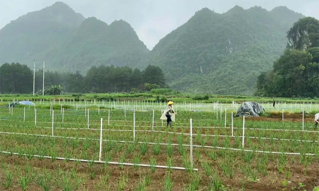 天等县天等镇稻香村营念屯村民 黄安富:韭苔种植4个月以后就可以进入采摘阶段,一次种植可采摘3年左右,而且一年四季都可以采摘。在了解到韭菜苔市场前景广阔后,我承包20余亩土地开始试种,目前收益良好。