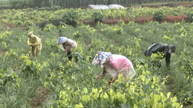 天等县天等镇稻香村营念屯村民 黄安富:这里的韭苔一亩地一年收益可达到4000多斤,年产值20000多左右,平时主要销往南宁,广东等地。