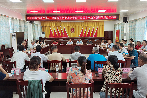 特派团专家组通过实地调研与集中座谈相结合的方式展开工作。先后到金钗镇广西万赢茧丝绸有限公司和广西梦洁茧丝绸有限责任公司调研蚕茧收购、茧丝生产加工和蚕丝被加工制作等情况。随后在金钗镇政府召开蚕桑产业发展调研服务座谈会。座谈会上,专家组根据当前马山蚕桑产业发展和实地调研情况,提出三点指导建议:一是积极抓好当前茧丝高位行情,努力做好下半年蚕桑生产,重点做好小蚕共育、养蚕期消毒防病,桑园水肥管理、病虫害防治等方面工作,促进农民增产增收。二是继续稳定马山蚕桑产业基础,通过企业带动,推动适度集中连片规模化发展。三是充分发挥马山地域、资源优势,加强蚕桑资源多元化利用,进一步完善马山蚕桑全产业链发展。
