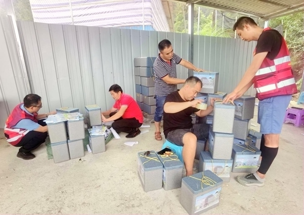 近日,在广西三江县八江镇马胖村的“马胖香鸡”生态养殖基地一派繁忙景象,抓鸡、宰杀、真空封装、入库冰鲜、配送……驻村工作队队员和村民们为中秋订单紧张忙碌着。