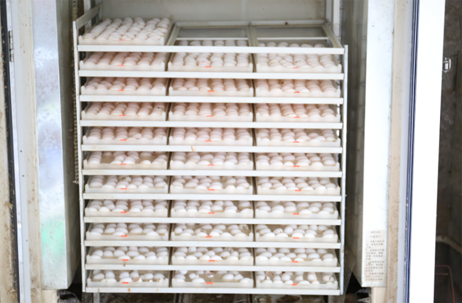 孔庆祖对记者介绍道,每天拣的鸽子蛋大概能有350枚左右,要做好每个鸽笼的下蛋和孵化的记录,除了初生蛋可直接售卖之外,都要送到孵化室,在那里消毒、孵化,大概孵化17天可以出壳,出壳后的幼鸽要送到老鸽子那里育雏,养30天左右就可以出售乳鸽,接下来就可以保持6天一批肉鸽出售的频率。