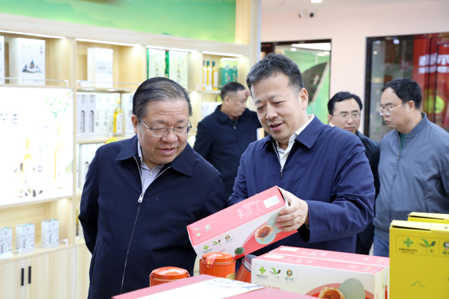 秦如培书记先后参观了广西供销社“三鹤”六堡茶文化展示中心、名特优农产品展销中心、农产品电商运营中心。他对自治区供销社立足服务“三农”,以“十个百亿元产业”为抓手,推进综合改革所取得的显著工作成效给予了充分肯定。秦如培书记强调,要充分发挥供销社系统网络资源优势,加强与国有企业对接合作,进一步推动农村物流、农产品销售、资产盘活等方面的项目建设,更好地服务“三农”工作大局和乡村振兴战略。