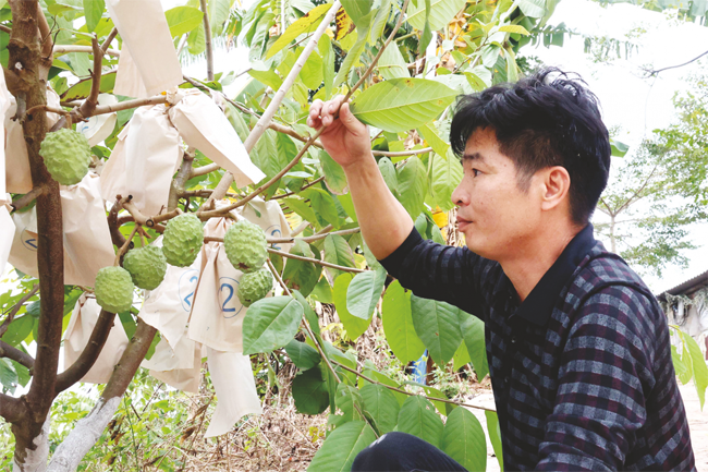 “我们合作社还有一个养鸡场和养鸭场,种植释迦果用的是鸡粪和鸭粪发酵而成的有机肥。”何汝亮在释迦果基地里养殖了430羽生态鸡,发展“种植+养殖”的立体种养模式,坚持种养结合、将畜禽粪污制成有机肥发展种植业,做到畜禽粪污的可循环再利用,构架起“畜禽—有机肥—种植”的绿色种养循环产业新模式。