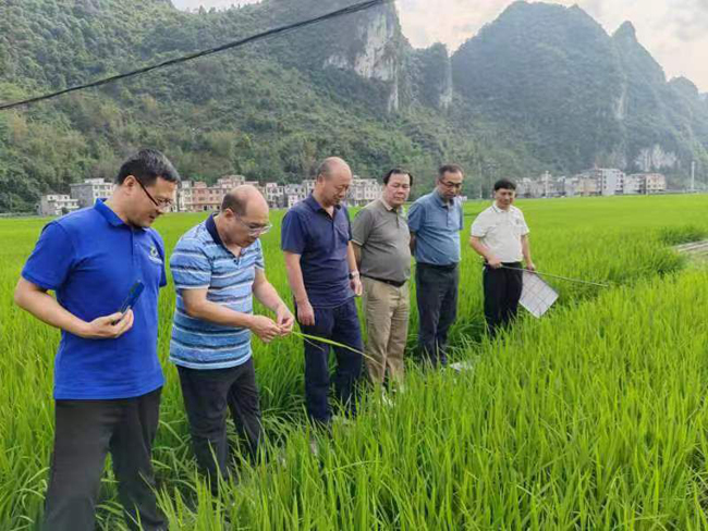 2024年5月7日,自治区植保站副站长滕冬建率农业专家组到东兰县开展水稻、玉米等粮食作物重大病虫害调研指导工作。
