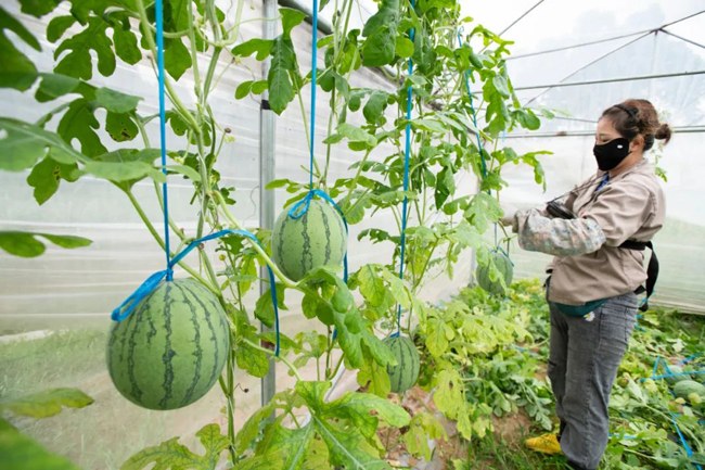 据了解,翠玲西瓜采用吊蔓立体种植技术,让西瓜吊着长,这样种出来的西瓜不仅产量高,甜度也高,很受市场欢迎。