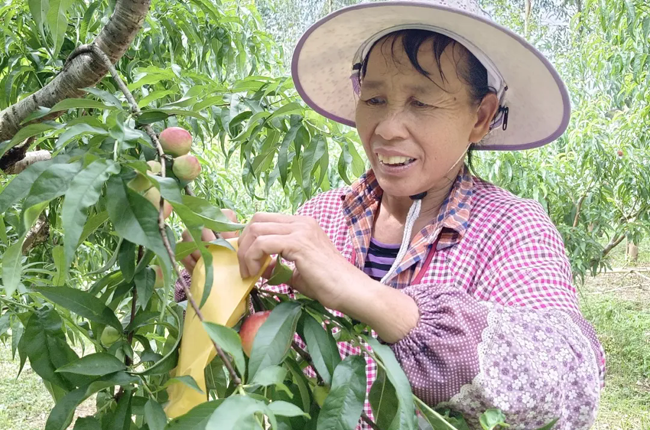 今年,由于气候异常和虫害影响,果园的油桃产量受到影响。白志刚经过多方取经,为果园引进了太阳能风力驱鸟器、电动割草机等设备,并采用油桃专用套袋方式,显著提升了油桃的防护效果。