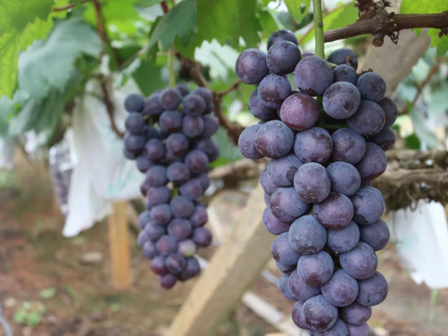经过十多年的产业发展,东佳村那学坡的葡萄产业已经日益发展成熟,种植技术也得到大幅提升。种植户们基本采用避雨栽培技术,使用经过处理的沼气液、花生麸等有机肥料结合进行培肥。待葡萄成熟后便统一套上纸袋,防止病虫害和灰尘侵扰。最终实现葡萄质量提升、提早上市,增加种植收益。
